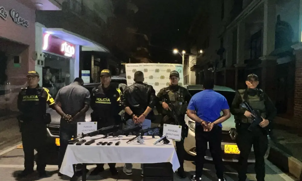 El procedimiento se llevó a cabo exactamente en la vía La Mansa-Primavera, sector de Entrada Farallones, sobre el kilómetro 21, en el departamento de Antioquía. Allí, las autoridades identificaron a los delincuentes como Alex Duván Mosquera Castillo, Néstor Alfonso Álvarez Montiel, y Luis Eduardo Mosquera Velásquez, quienes portaban el armamento de alto poder.