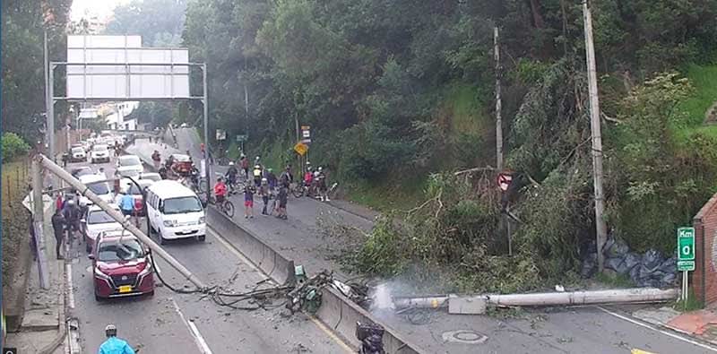 En la mañana de este sábado, un incidente afectó la circulación en la avenida Circunvalar con calle 85, en el norte de Bogotá, cuando un árbol de gran tamaño y dos postes de energía cedieron y colapsaron sobre la vía. El hecho, ocurrido alrededor de las 7:25 a. m., ha generado serias afectaciones en la movilidad, ya que el tránsito se encuentra restringido en ambos sentidos de la vía.
