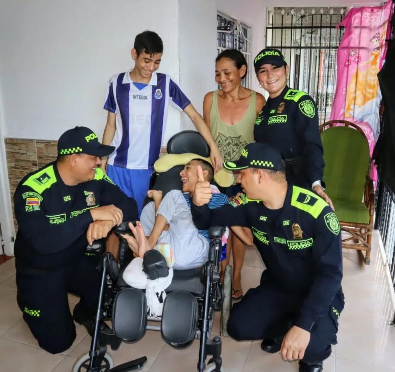 En otra ocasión, en el barrio San Salvador, se coordinó una acción conjunta entre comerciantes y agentes de policía para instalar una piscina en la casa de Duván, un niño con autismo que deseaba nadar. El operativo, en el que participó una tanqueta del UNDMO, fue diseñado con fines recreativos, no de control del orden público.