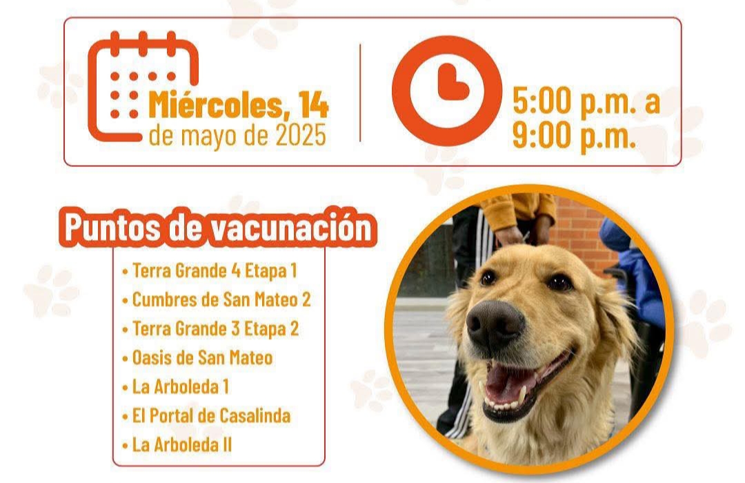 Como parte de su compromiso con la salud pública y el bienestar animal, el municipio de Soacha llevará a cabo una jornada especial de vacunación gratuita contra la rabia dirigida a perros y gatos. Esta actividad se realizará el próximo miércoles 14 de mayo en diferentes puntos de la Comuna 5, en un horario comprendido entre las 5:00 de la tarde y las 9:00 de la noche.