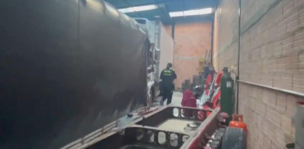 De inmediato, la zona de atención se desplazó al lugar señalado, donde fue identificado un inmueble tipo bodega y, con la respectiva autorización, se realizó la verificación de la bodega hallando dos camiones.