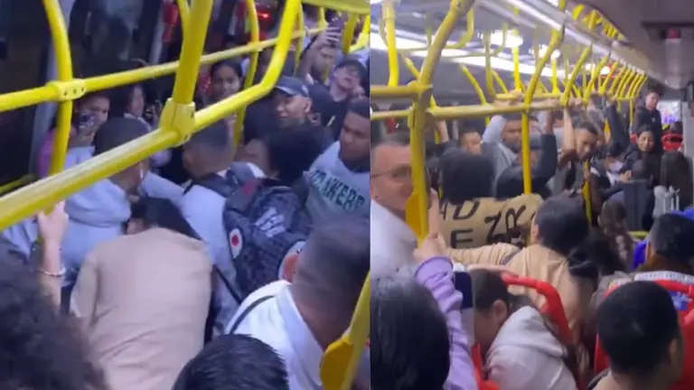Un episodio de intolerancia ciudadana quedó registrado en pleno 25 de diciembre al interior de un bus articulado de TransMilenio, donde dos mujeres protagonizaron una pelea física ante la mirada de decenas de pasajeros. El hecho, ocurrido en un vehículo que circulaba completamente lleno, generó rechazo y preocupación entre los usuarios del sistema de transporte masivo.