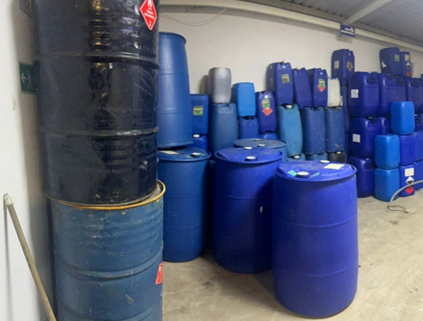 Durante el operativo se encontró que los químicos líquidos estaban almacenados en 213 canecas plásticas y metálicas, mientras que una sustancia en polvo de color negro se hallaba distribuida en 42 sacos. En el lugar también fueron decomisados cinco hornos microondas, un teléfono celular, así como un tractocamión y un vehículo tipo furgón, presuntamente utilizados para el transporte del material.